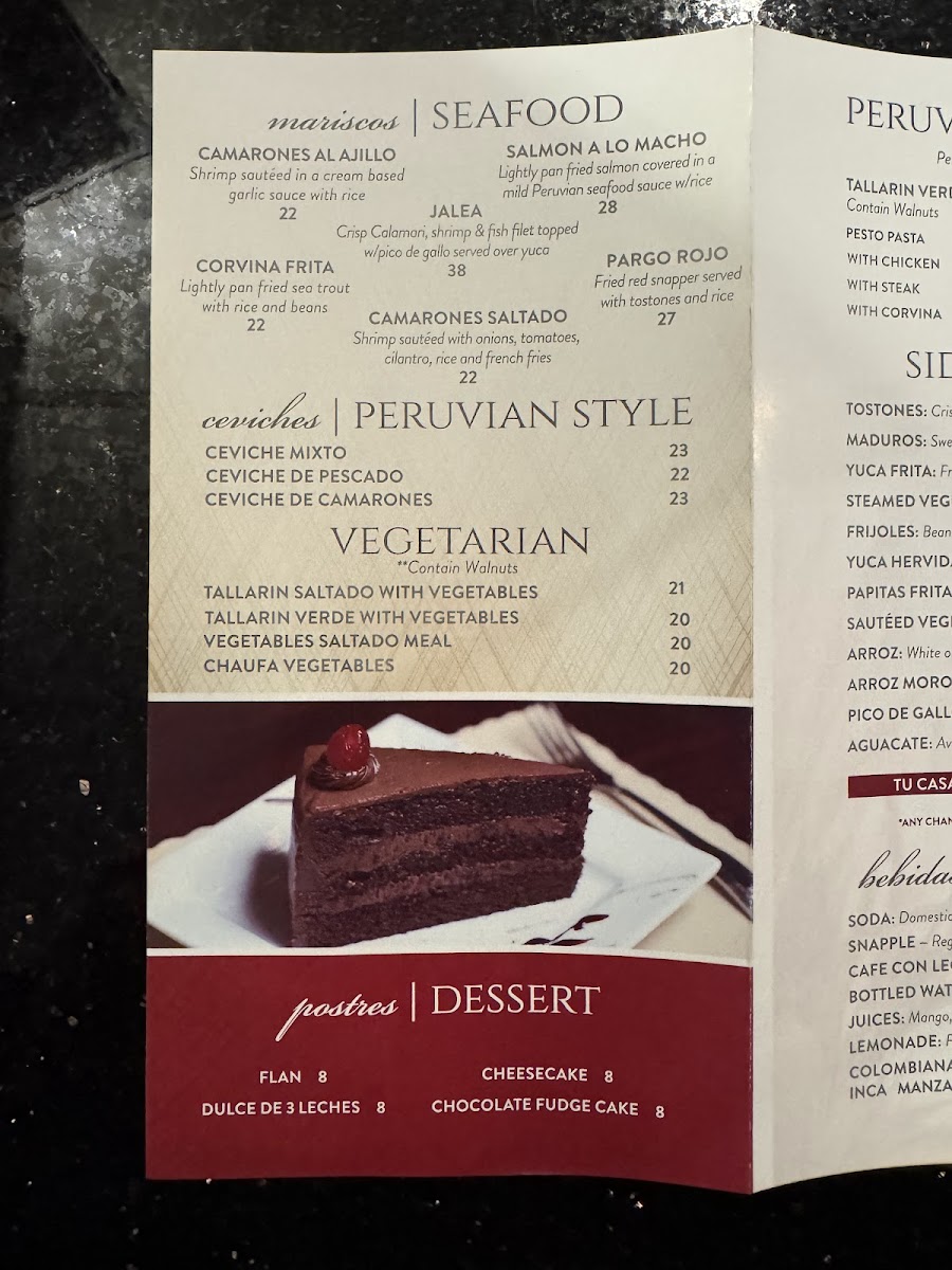Lightly pan-fried salmon covered in a mild Peruvian seafood sauce with rice.